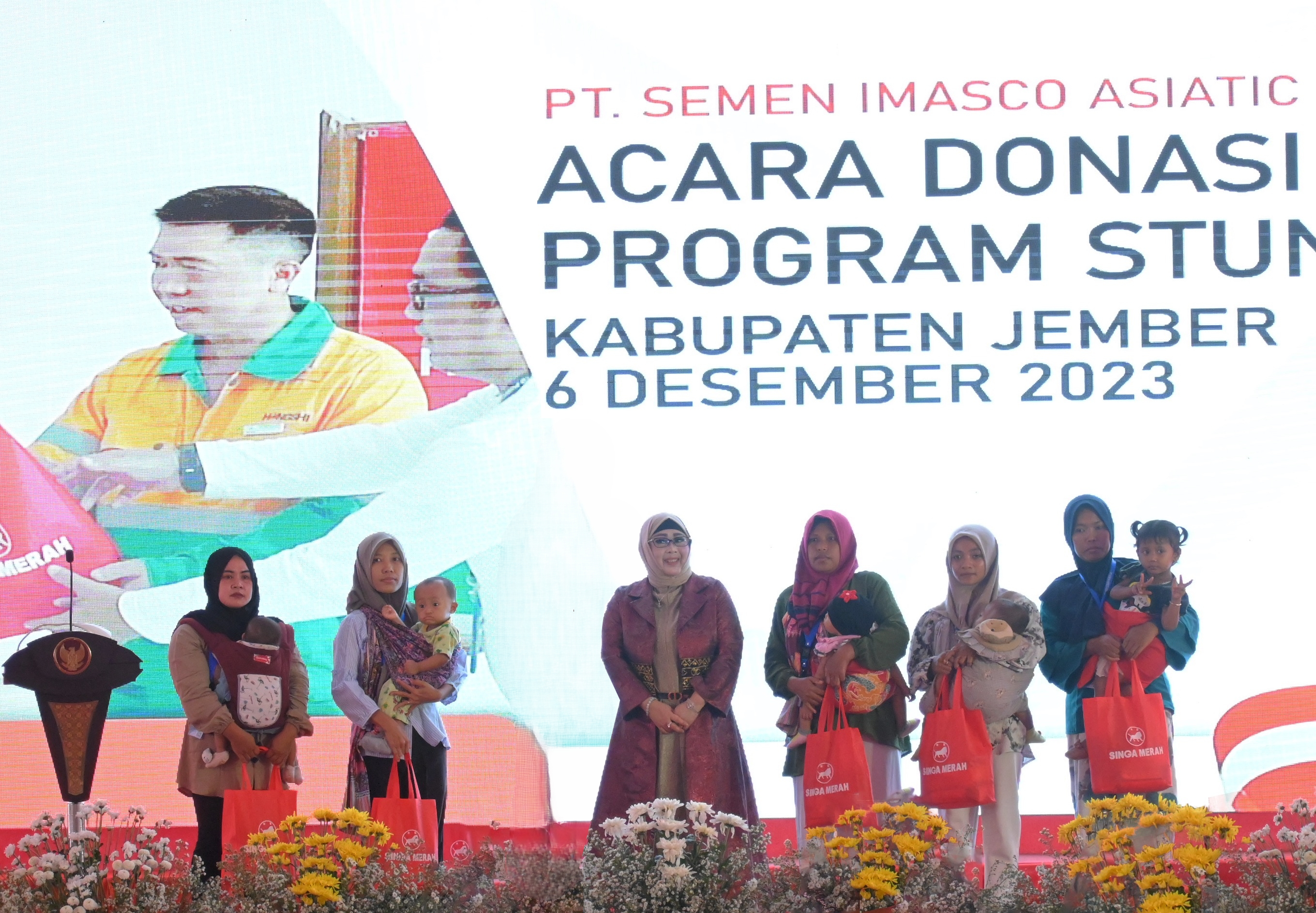 參加本次活動的還有,東爪哇省礦產資源廳、警察廳、部隊、衛生廳、公共工程廳、社保廳、糧食廳等省級部門領導;任抹縣政府、縣議會、警察局、治安部隊、衛生局、法院、土地局、移民局、供電公司等縣級部門領導;普格鎮鎮政府、周邊4個村村政府領導;印尼Dewa Dewi Dedi基金會;BNI銀行;知名度較高的媒體、NGO、NU宗教協會、所在鄉鎮村民代表、受捐助人員代表;印尼區域、任抹紅獅經營班子及員工代表約350人參加。